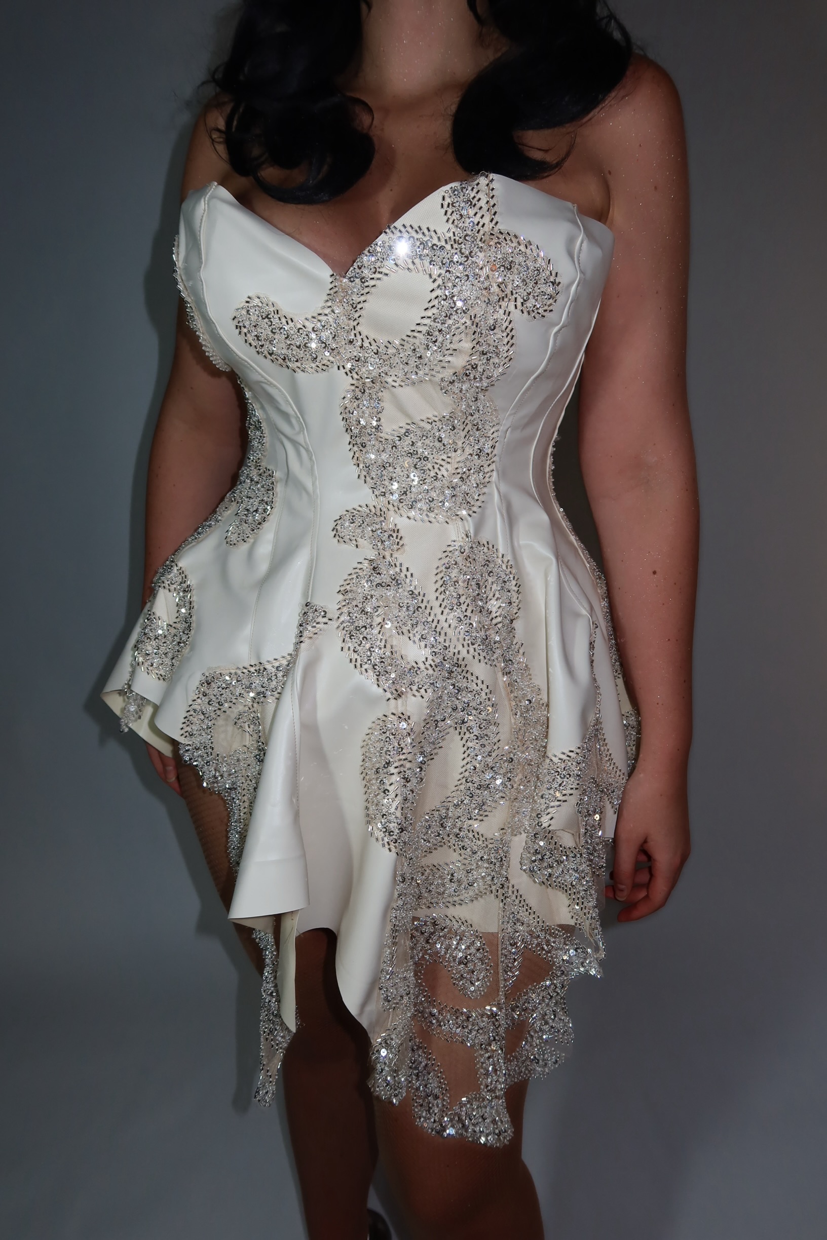 This stunning cream corset is crafted from high-quality leather and finished with delicate hand-stitched details. Sparkling stone embellishments add a touch of glamour, making it the perfect blend of sexy and elegant. Designed to shape and highlight the waist beautifully, it offers both confidence and comfort.
